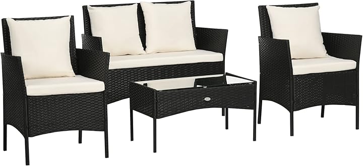 Outsunny salottino in rattan da giardino con tavolino mobile da esterno IT860-259V00BK0631